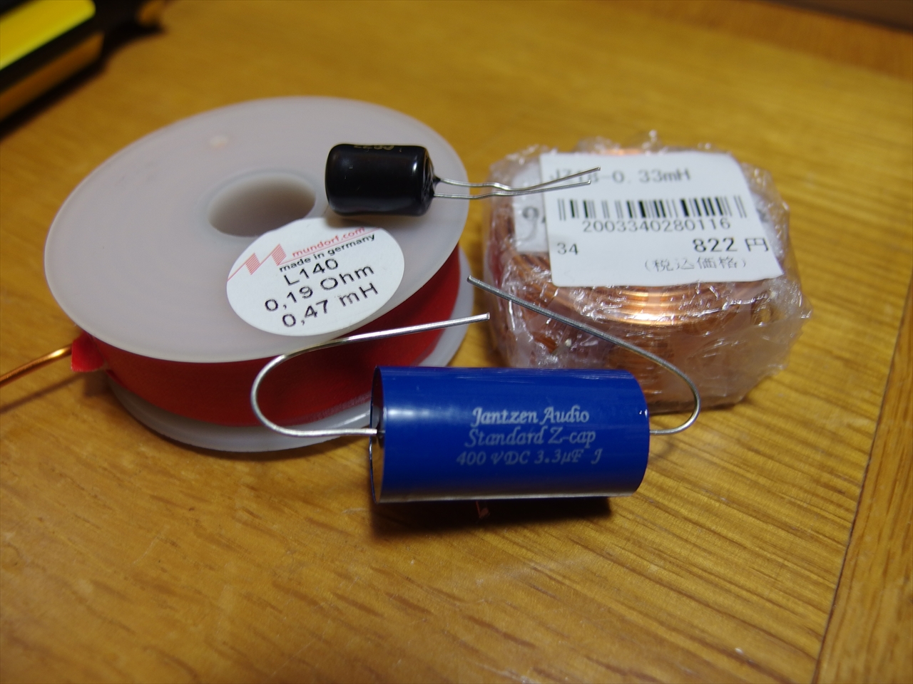 ツィーターは12dB/octのコンデンサがニチコンのケミコンで3.3μF、コイルは不明。